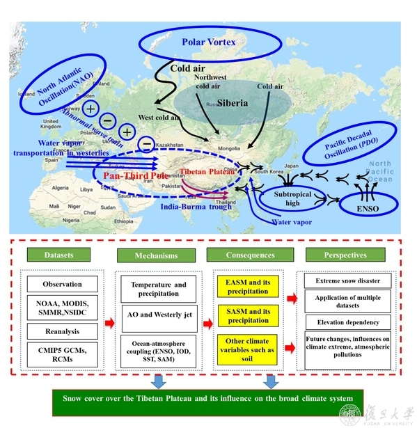 The research team led by Professor Qinglong You from the Department of Atmospheric and Oceanic Sciences/Institute of Atmospheric Sciences published a paper titled “Review of snow cover variation over the Tibetan Plateau and its influence on the broad climate system” in Earth-Science Reviews.