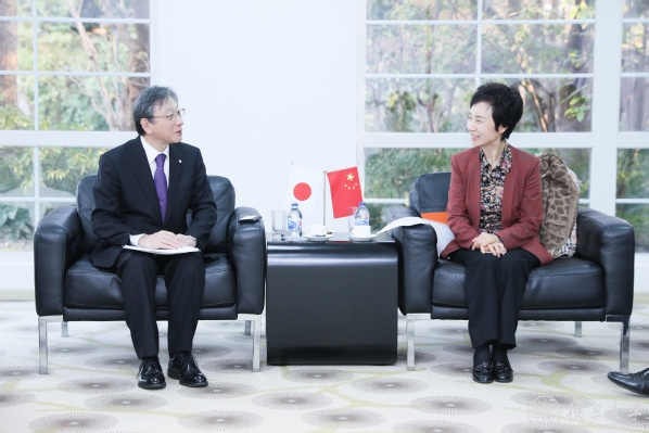 President Takashi Matsuoka from Doshisha University visited Fudan University on Dec. 16. Jiao Yang, Chairperson of University Council of Fudan University received the delegation.