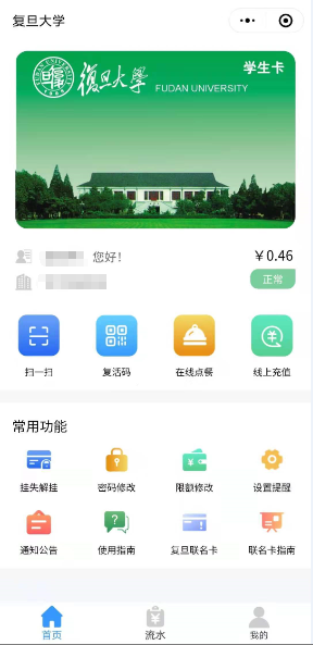 With all the same functions of the physical Fudan eCard and Fudan Campus QR Code for campus entry, shuttle services, hospital treatment and payment at campus canteens, bakeries, bookstores, supermarkets, etc. Plus, the card can be used for the city’s public transit, including bus, subway and ferry. In fact, the card can be used to pay fares in any covered service of the China T-Union, a program by the Ministry of Transport of China aiming to integrate the nationwide public transport networks.