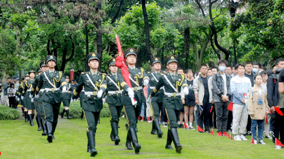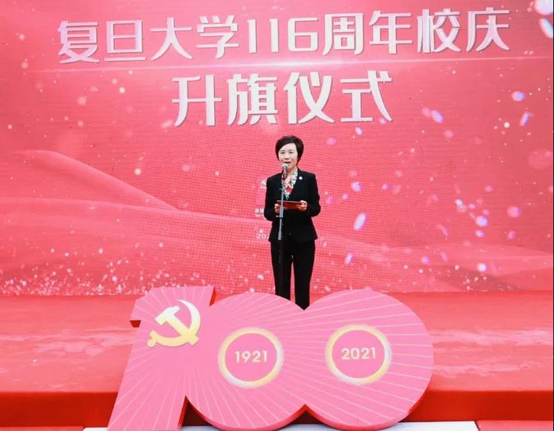 The flag-raising ceremony for Fudan's 116th anniversary was held on Handan campus today.