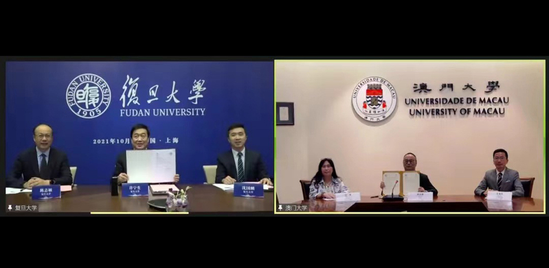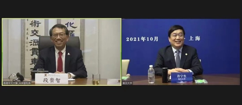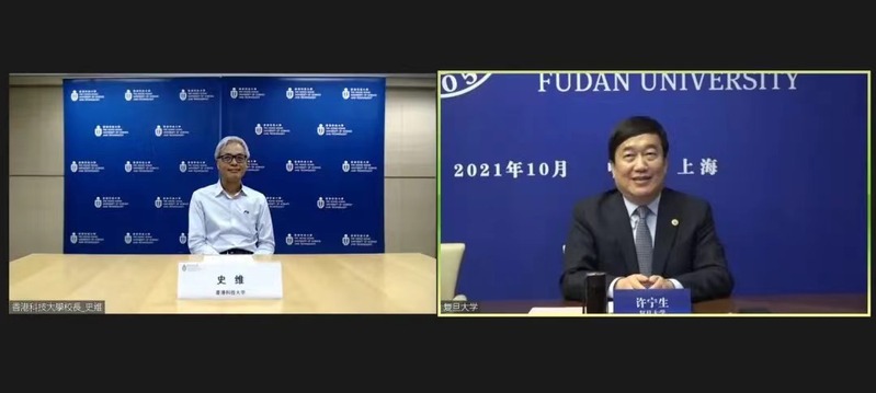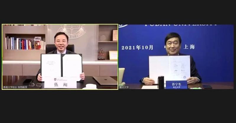 On behalf of Fudan University, President Xu Ningsheng met with the heads of the University of Hong Kong (HKU), the Chinese University of Hong Kong (CUHK), the Hong Kong University of Science and Technology (HKUST), University of Macau (UM) and Macau University of Science and Technology (MUST) via video links during the 19th Annual Presidents’ Meeting on Building World-Class Universities. Xu also signed cooperation agreements online with the heads of UM, MUST and HKU on October 14-15.