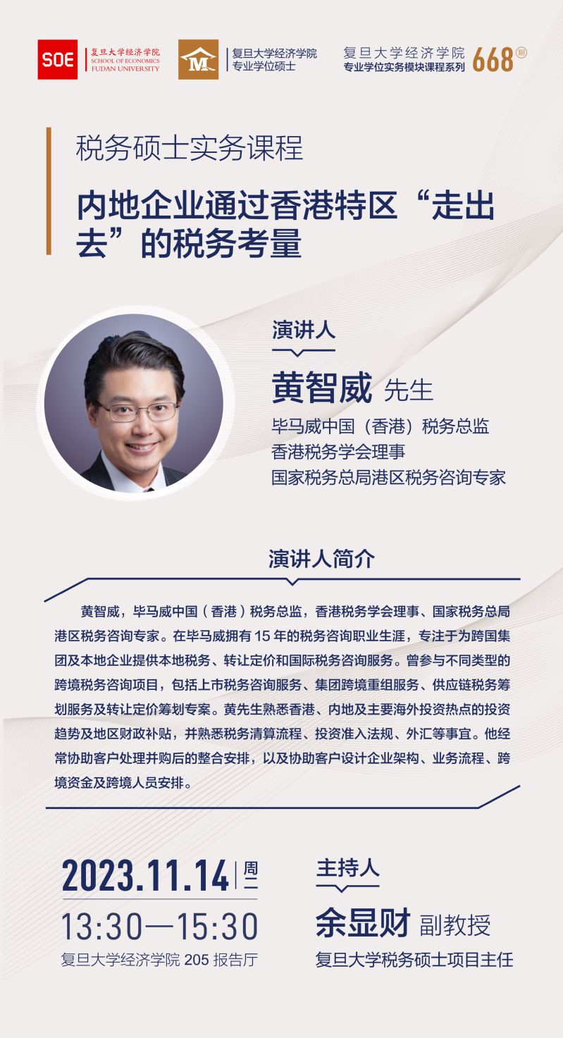 Theme:Tax considerations for Mainland enterprises to "go global" through the HKSAR