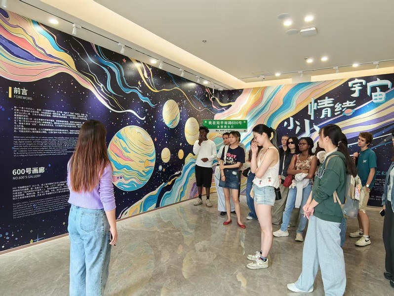 On the afternoon of April 30, a group of international exchange students and teachers from the Culture and Health course in the Department of Sociology at Fudan University's School of Social Development and Public Policy visited the No. 600 Gallery, located within the Shanghai Mental Health Center, to collectively experience the Tiny Emotion Universe—Adolescent Pan-Emotion Art Exhibition. This field trip aimed to expand students' understanding of adolescent mental health, social emotional expression, and medical humanities through an immersive art experience.