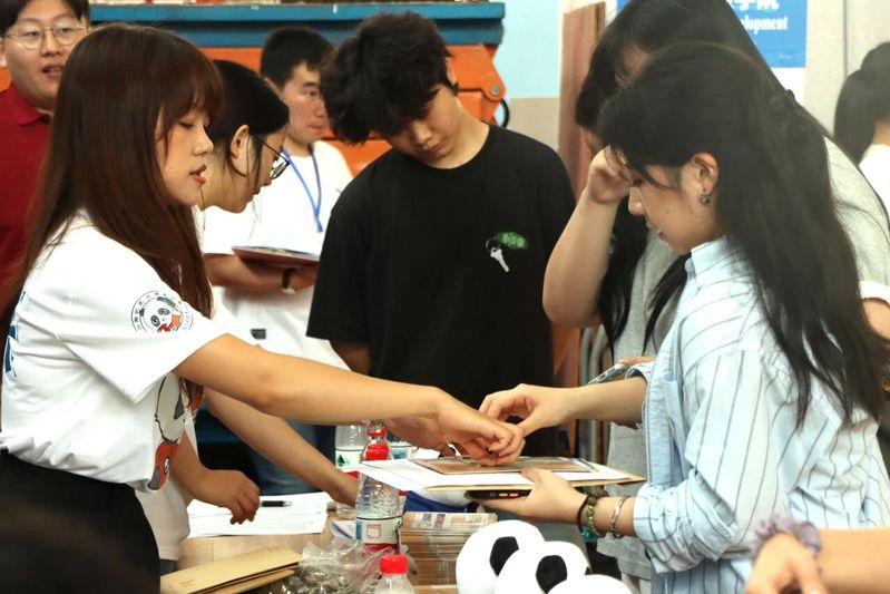 At the booths, displays of cutting-edge technology—chips, wafers, and large silicon slices—were neatly arranged, showcasing the university’s commitment to innovation. A humanoid robot named “Friday” waved and greeted the newcomers, drawing curious glances and sparking interest among the students. The robot’s friendly gestures and interactive presence added a modern touch to the traditional welcome, symbolizing the blend of technology and education that Fudan is known for.