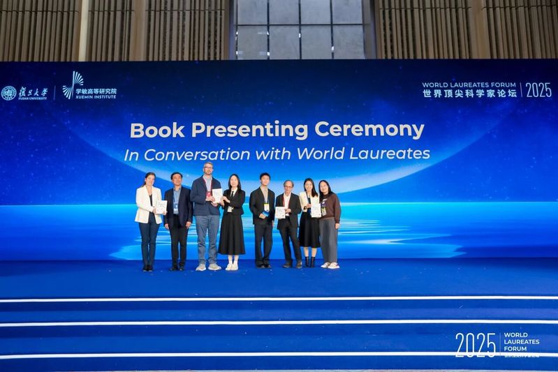 At the closing ceremony, DING Ding, editor-in-chief of the People’s Daily Press, WU Jing, a faculty member of Fudan’s School of Journalism, and graduate students XU Zuirui and HU Jia’ni, presented the book In Conversation with World Laureates to representatives of top scientists and young scientists.