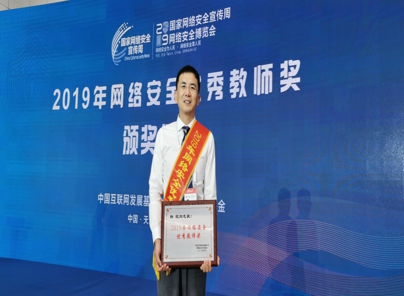 9月16日,由中央宣传部、中央网信办等部门联合举办的2019年国家网络安全宣传周在天津开幕。开幕式上,教育部翁铁慧副部长宣布了2019年度10位国家网络安全优秀教师奖获奖名单,我校计算机科学技术学院杨珉教授榜上有名。该奖项系中央网信办和教育部于2016年设立,目的是为了加快网络安全人才培养,鼓励优秀教师投身网络安全教学和研究,奖励为国家网络安全事业做出突出贡献的人员。