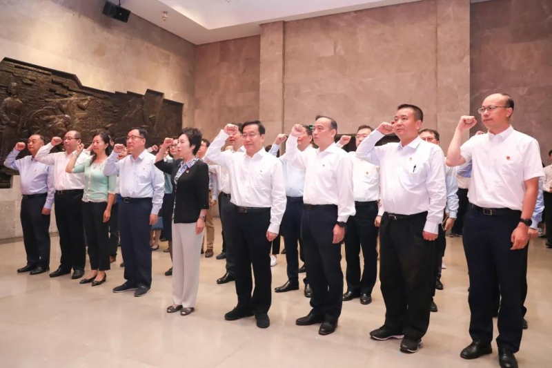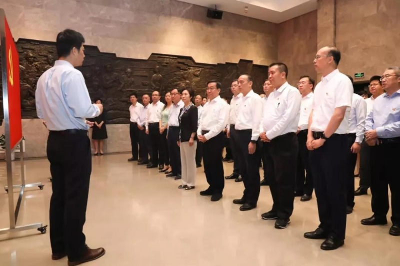 校领导一行先后来到中共二大会址纪念馆、中共四大纪念馆。展览陈列的文献、照片、实物、影像,生动再现了中国共产党创建时期的峥嵘岁月。焦扬、许宁生等认真听取讲解,不时驻足观看,从党的奋斗历程中体味党的初心使命。在中共四大纪念馆,焦扬带领全体同志在鲜红的党旗前高举右拳,重温入党誓词。