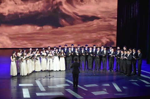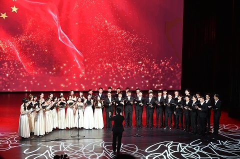 一曲由复旦大学Echo合唱团带来的《红旗颂》片段拉开了诵读会的片段,也唱出了青年学子对祖国的深情。这支在2019迎来十周年的合唱团由复旦学生组成,已跻身上海知名乐团行列,人气、知名度和水准皆比肩专业队伍。
