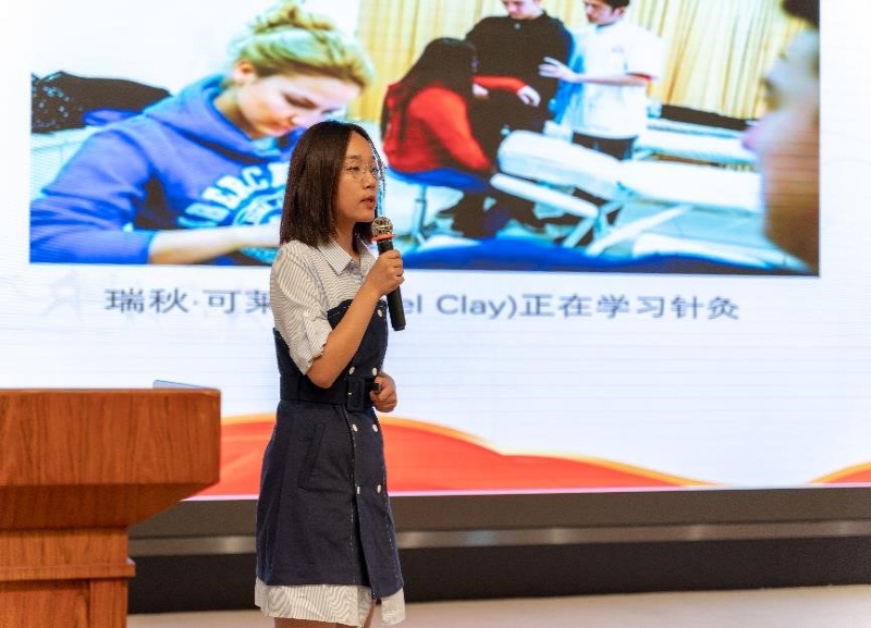 上海中医药大学祁雯倩,以《携手一带一路,发扬优秀传统文化》为题进行宣讲。