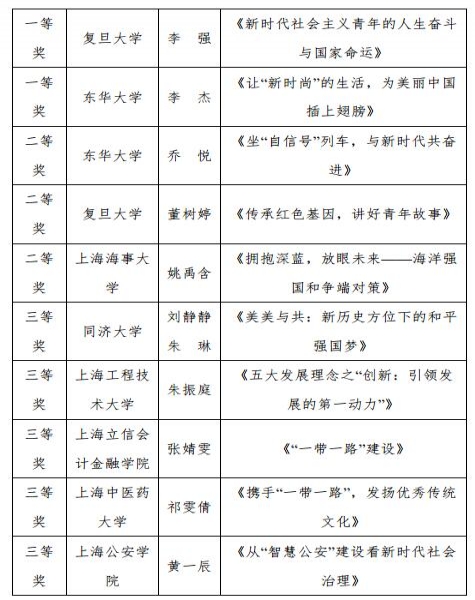 第二届上海市高校学生理论宣讲微课程比赛决赛结果