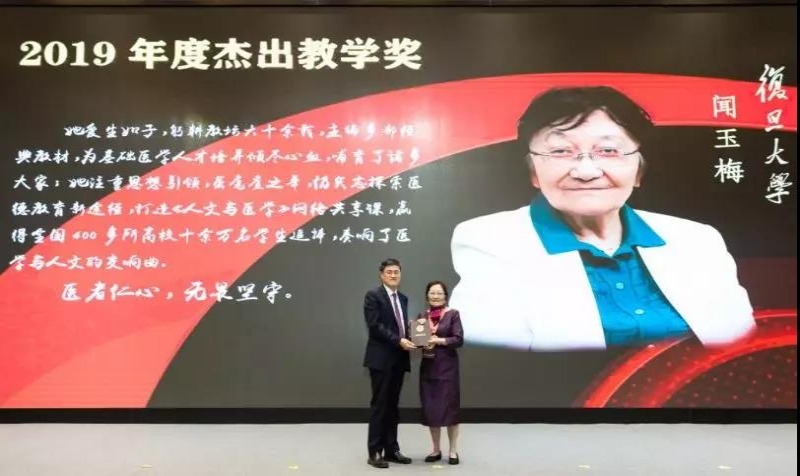 复旦大学基础医学院教授、博士生导师,中国工程院院士闻玉梅荣获“杰出教学奖”。评审专家委员会授予闻玉梅的颁奖词称:她爱生如子,躬耕教坛六十余载,主编多部经典教材,为基础医学人才培养倾尽心血,哺育了诸多大家;她注重思想引领,虽耄耋之年,仍矢志探索医德教育新途径,打造《人文与医学》网络共享课,赢得全国400多所高校十余万名学生追捧,奏响了医学与人文的交响曲。医者仁心,无畏坚守。