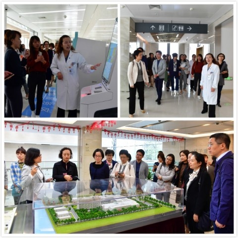 会后,复旦大学上海医学院医院管理处相关负责同志带领院办管理分委会一行前往上海市质子重离子医院,观摩医院布局规划模型、PT系统设备模型和十年历程墙,听取医院工作情况报告。随后,一行人前往附属肿瘤医院浦东院区参观门诊大厅、乳腺肿瘤诊室等区域,并交流了医院现阶段使用的门诊自助挂号机和多功能自助取片机。