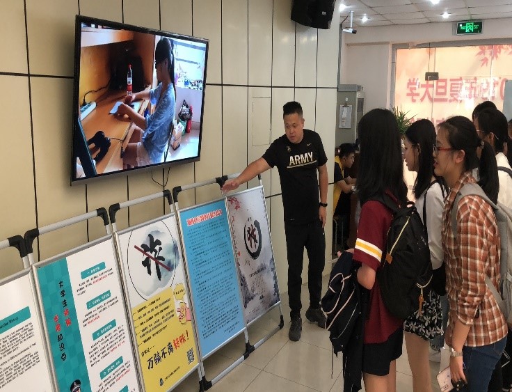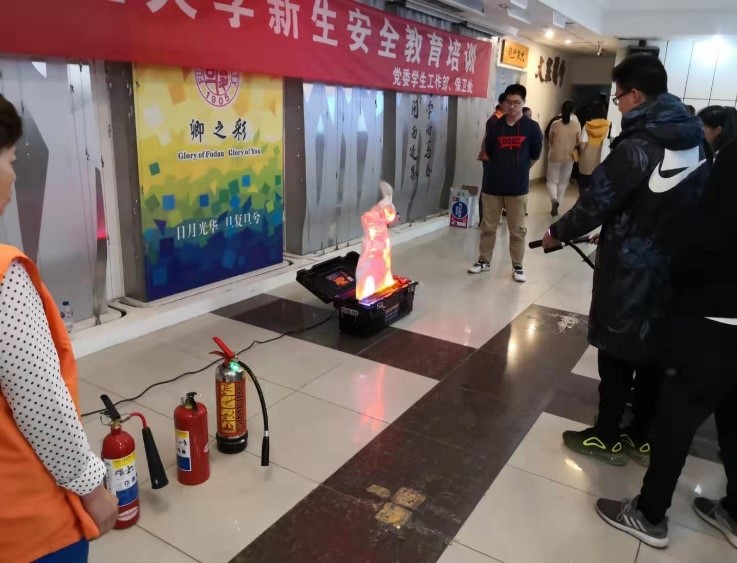 此次安全教育培训,在邯郸校区南区构设新生安全教育体验馆,分别设置了模拟寝室、灭火器实操区、逃生体验区和预防诈骗犯罪专题教育区。通过模拟寝室实景讲解学生宿舍常见消防安全隐患;通过电子灭火器训练熟练掌握常用灭火器使用方法及注意事项;通过配备真实疏散引导装置,构建贴近实际背景的疏散环境,掌握火场应急疏散技能;通过保卫处老师的防诈骗知识讲授,观看各类诈骗犯罪典型案例视频和展板,提高安全警觉和辨识能力。