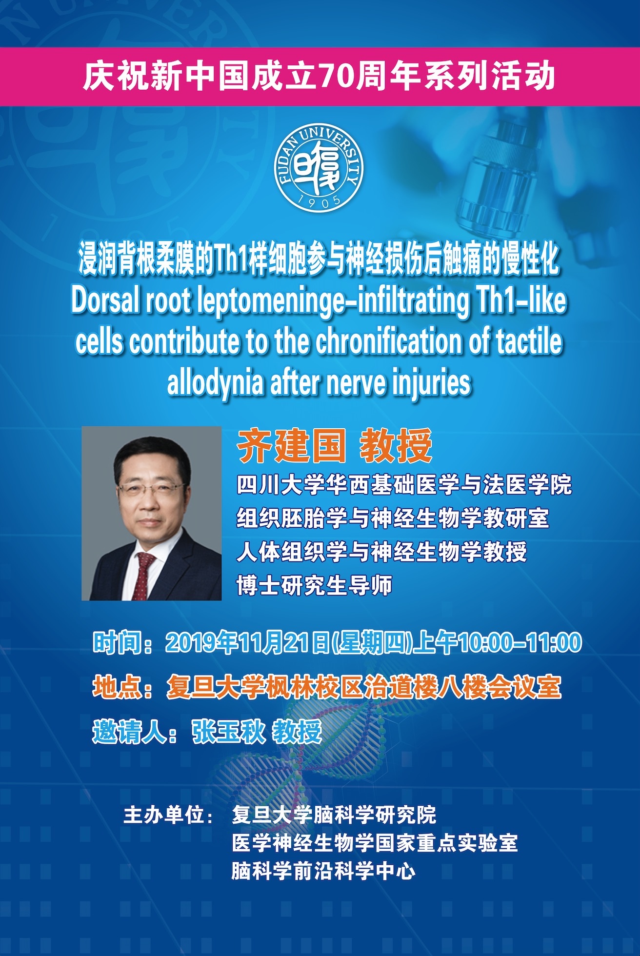 神经科学前沿学术报告:Dorsal root leptomeninge-infiltrating Th1-like cells contribute to the chronification of tactile allodynia after nerve injuries