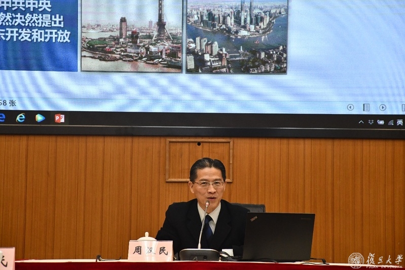 启动仪式后,周汉民做《长三角一体化高质量发展和上海自贸区新片区战略当成为应对百年未有之大变局的重要举措》专题讲座。他通过一系列数据和热点案例,生动形象地讲解了当下百年未有之大变局的主要特征和表现。通过回顾我国改革开放41年历程中浦东开发开放、我国加入世界贸易组织、设立自由贸易试验区三个重要时点和重大举措,指出面对大变局的形势,以习近平同志为核心的党中央从容应对,带领全国各族人民始终在实现国家富强、民族振兴、人民幸福的道路上前进。随后,他从国家战略和顶层规划的角度解读了《长江三角洲区域一体化发展规划纲要》,并对长三角一体化、上海自贸区新片区建设和科创板提出了独到的见解。他强调指出,要以激情、远见和决心落实好党中央这一重大战略部署,在共商、共建、共享的原则指导下,使长三角一体化高质量发展成为我国改革开放的新标杆。他希望我校要抓住新的机遇,党派成员要积极发挥作用,在推进长三角一体化高质量发展进程中贡献智慧和力量。整场报告立意高远,内容丰富、观点鲜明、语言生动,使与会人员受益匪浅。现场聆听报告的统一战线成员纷纷表示,在国家颁布《长江三角洲区域一体化发展规划纲要》的次日,就聆听到这样一场高水平的辅导报告,对长三角一体化国家战略有了更深入的了解,将为对接服务国家战略和上海经济社会发展需求发挥更积极的作用。
