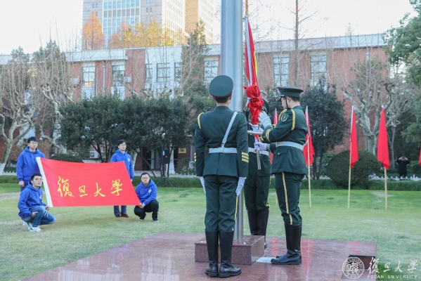 2020年1月1日,早上7:30,朝霞泛金,百余名复旦师生齐聚邯郸校区国旗坪前,举行新年的第一场升旗仪式。雄浑的国歌声中,五星红旗又一次飘荡在复旦的天空。望着鲜艳的五星红旗,大家齐唱校歌,“复旦复旦旦复旦,日月光华同灿烂”。
