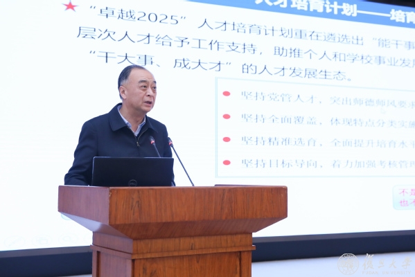 张人禾从培育目标、层次、体系、程序四个方面介绍了复旦大学“卓越2025”人才培育计划,并就第一批申报遴选情况以及培育支持方案进行了详细分析。他表示,希望通过该计划助推科研人员和学校事业发展,在全校营造好“干大事”“成大事”的人才发展生态。