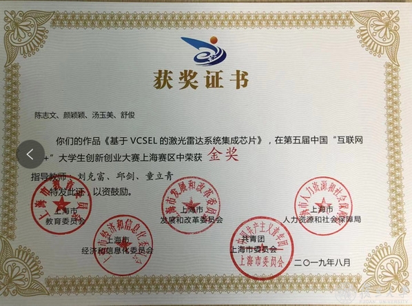 激光雷达项目组研究生在2019年第五届中国“互联网+”大学生创新创业大赛上海赛区中荣获金奖
