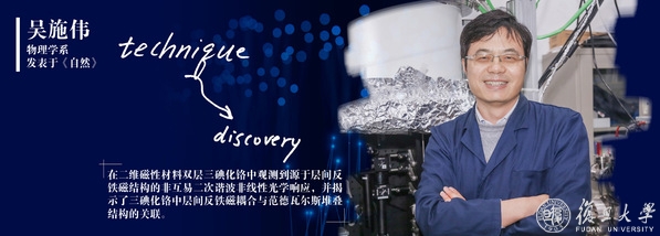 8月和11月,仅仅三个月内,《自然》和《科学》主刊分别刊登了复旦大学物理学系关于二维磁性材料的重要成果,这两项成果均有吴施伟课题组的一份力。吴施伟课题组先是与华盛顿大学许晓栋课题组合作,发现了由层间反铁磁产生的巨大的非互易二次谐波非线性光学响应,并揭示了三碘化铬中层间反铁磁耦合与范德瓦尔斯堆叠结构的关联;课题组又与复旦大学物理学系高春雷团队强强联手,利用自旋极化扫描隧道显微镜在原子级层面彻底厘清了双层二维磁性半导体溴化铬的层间堆叠和磁耦合间的关联,为二维磁性的调控提供新的维度。