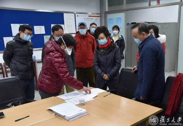 2月6日,复旦大学党委书记焦扬赴枫林校区检查指导校区疫情防控工作。复旦大学常务副校长、上海医学院院长桂永浩,复旦大学党委副书记、上海医学院党委书记袁正宏等一同参加检查。