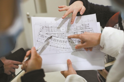 病区里通道狭小,人民医院原本只打算让每个医疗队派4名负责人来看一下,再转告其他同事。但中山医院的同事都觉得,光听人说怎么说得清,不亲眼看到怎么作数?在他们的坚持下,勘察场地的人员增加到了八九个。