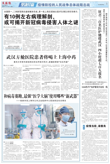 昨天晚上从武汉传来消息,“两张药方”正在当地快马加鞭地生产中,所有由华山医院驰援的方舱医院患者3-4天后就能喝到这一药剂。