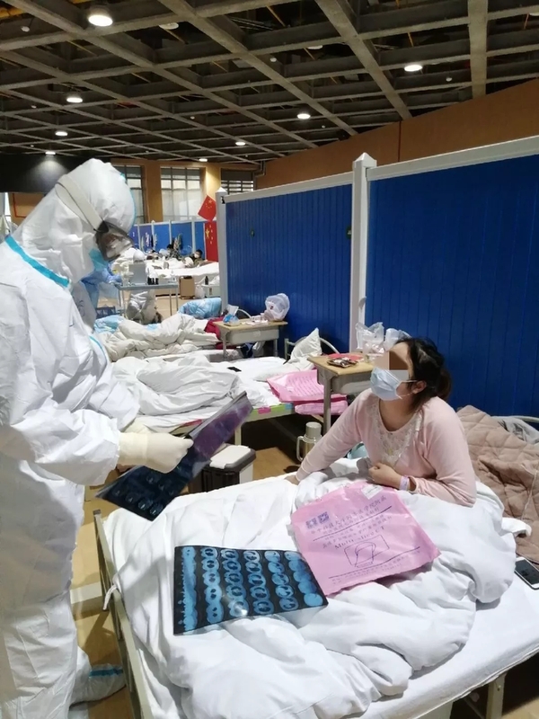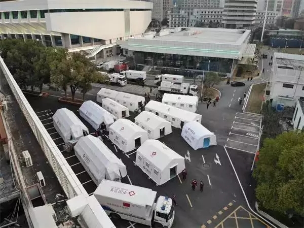 2月5日,46人组成的华山医院第三批医疗队到达洪山体育馆,一到达就开始展开帐篷医院,几个小时候就开始收治病人。当时的工作主要是对社区送来的病人进行预检,包括登记他们的病情,为他们做胸部X光检查,血液检查。