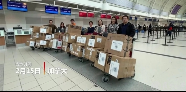 多伦多时间2月15日,多伦多校友会及当地华侨华人将捐赠物资发往中国