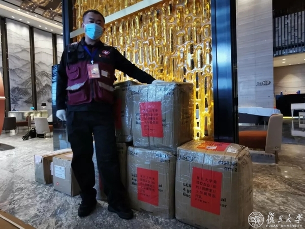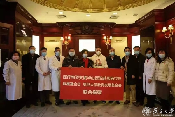 2月8日,元宵节,复旦附属华山医院第四批援鄂医疗队向武汉再出发。为了支援本次医疗队出征的物资,学校星夜紧急动员校友、校董和社会力量,得到校友企业复星集团紧急增援防护服500件、防护口罩2000只。