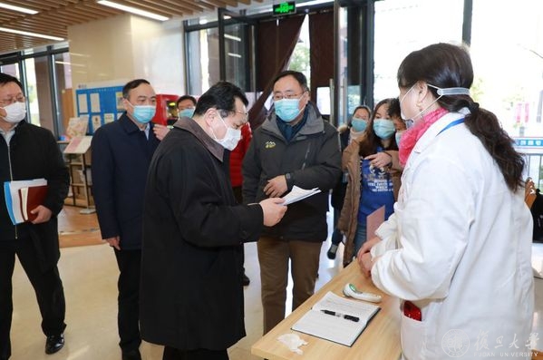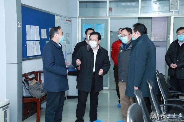 2月21日上午,上海市教卫工作党委书记沈炜一行来到复旦大学上海医学院,实地调研检查新冠肺炎疫情防控落实情况。复旦大学党委副书记、上海医学院党委书记袁正宏,复旦大学常务副校长、上海医学院院长桂永浩,徐军、汪志明、毛颖等院领导及有关部门负责同志陪同调研检查。