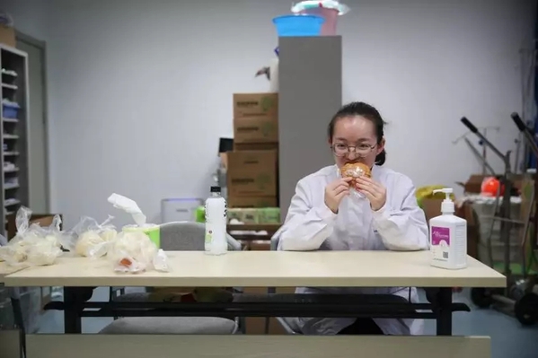 每天,两个病区的医护人员都要化身“快递小姐姐”和“快递小哥哥”,帮着在外采购生活必需品,再免费送到病人手中。有时是面包、水,有时是纸巾,甚至医生自己都不充裕的口罩。有患者皮肤干燥,医生还带去了中山医院自制的尿素脂软膏。这些物资,不仅解决了患者的燃眉之急,更让他们知道,医务人员没有忘记他们。