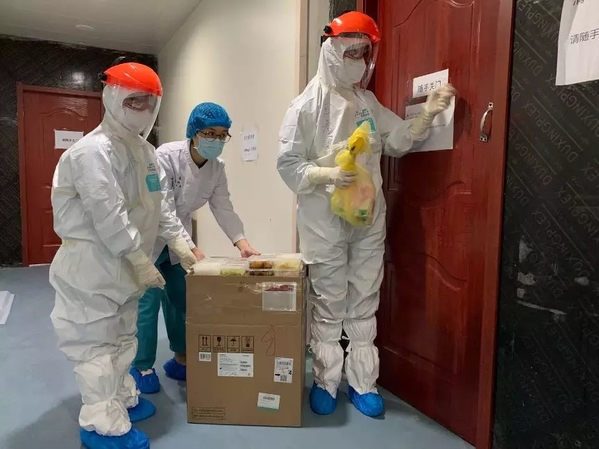 疏导是从两个桔子开始。2月12日,冯国栋和费敏两位医生查房时,搬进了一箱桔子。这些桔子原本是医院发给他们个人的,让他们在工作之余补充点能量。