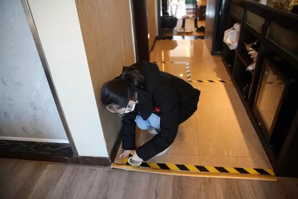 陈翔为一名队员的房间进行区域划分,分出污染区半污染区和洁净区