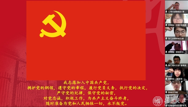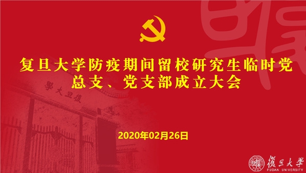 “在特殊的2020年的春天,我们用特殊的方式,开这场特殊的会议。”为加强对留校研究生党员的管理,组建党员服务岗,复旦大学成立防疫期间留校研究生临时党总支、党支部。临时党支部任务主要分为两个阶段:在研究生返校前,在食堂、门岗、楼宇等地设立党员服务岗,协助相关部门开展校园防疫工作;在研究生开始返校到恢复教学期间,协助开展好园区管理,学生服务等工作。