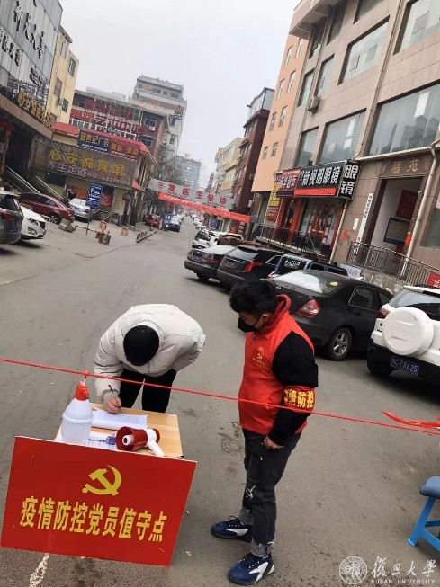 道口三尺地,阻击第一线。面对疫情,志愿者同学们积极参与到重要道口的体温测量、车流引导和秩序维护等相关工作中。无论是高速出入口,还是街道、村落的重点道口,都有着复旦青年的身影。