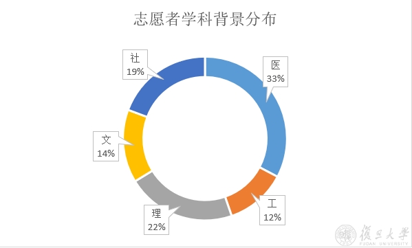 在复旦校团委青年志愿者工作部的组织下,复旦大学战“疫”前线医务工作者子女线上辅导志愿队已服务超过两周。志愿者中包括392名本科生,71名硕士生,28名博士生,还有一位曾参加研究生支教团的毕业校友。志愿者学科分布广泛。