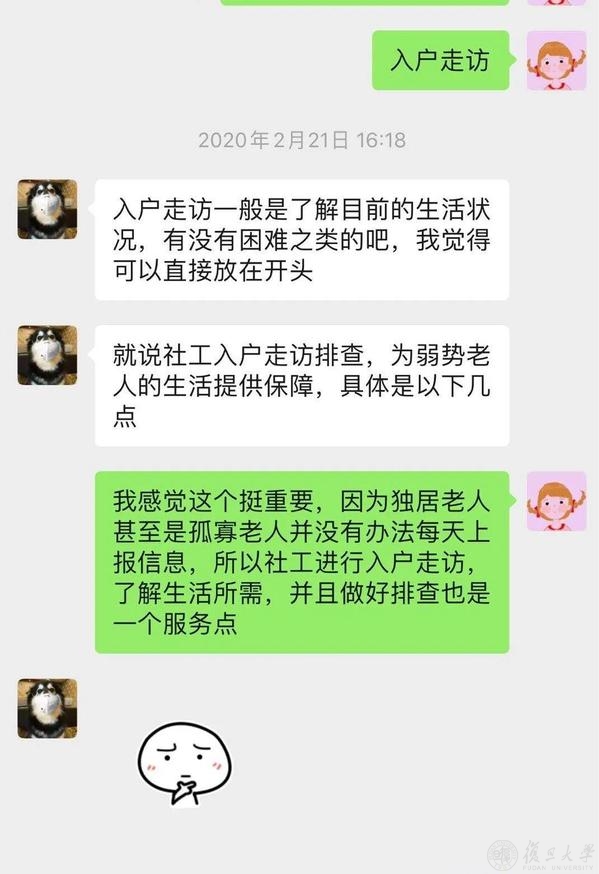 社会发展与公共政策学院社会工作专业的学生团队主动与上海市复惠社会工作服务中心合作,在社区中开展科学防疫知识宣传,为有需要的人提供心理疏导。团队成员还探讨疫情影响下社会工作者在社区治理中的实践服务,总结社会工作者所承担的重要角色以及所发挥的关键作用,以期为社会工作介入危机服务提供经验。
