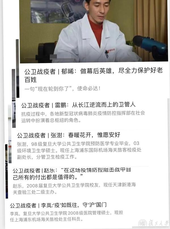 公共卫生学院与新闻学院合作,将目光瞄准一线、让笔尖聚焦一线,推出“公卫战疫者”系列专访,目前已经连续报道了14位奋战一线的复旦人,引起广泛关注。