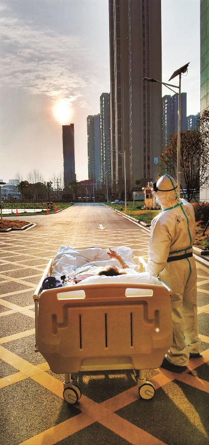 5日,做完CT回病房的路上,刘凯问老先生,要不要看一眼日落。刘凯知道,老先生已在病房里住了许久,一定想念久违的阳光。其实,刘凯自己何尝不想多感受一下太阳。在武汉的这一个月里,除了酒店就是医院,很多医务人员也闷得发慌。