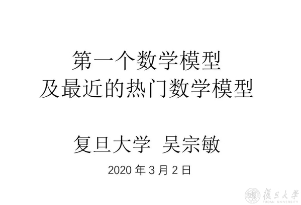 3月2日,《数学模型》第一课由数学科学学院长江学者特聘教授、原上海市工业与应用数学学会理事长吴宗敏主讲。他从第一个数学模型讲起,结合当前新冠肺炎疫情传播问题,讲授了他对数学建模的理解和认识。