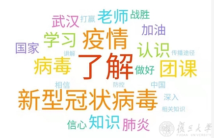 隔离不隔情,学习不断线。每周一次的团课让学生深受鼓舞,引领青年同舟共济、众志成城,一同打好抗击疫情人民战争,复旦在行动。课中弹幕和课后反馈中,除了对讲座内容的理解,还涌现出“信心”“战胜”“加油”的正能量词汇,更多的复旦青年开始思考,如何担负起青年团员的责任,更好地在抗击疫情中做出自己的贡献。