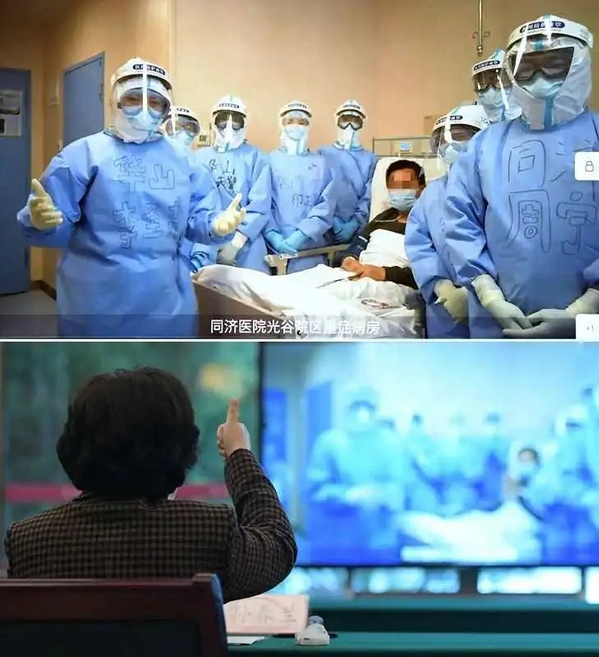 在视频连线同济医院光谷ICU医护人员,听到华山医疗队第四纵队领队李圣青汇报做到了三位ECMO病人百分百成功脱机时,孙春兰竖起了大拇指。