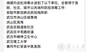向附属医院支援武汉的医疗队捐赠物资的校友