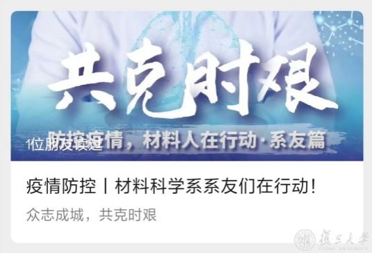 疫情之下,全国各地材料科学系校友门主动履行使命,齐心协力,共抗疫情。他们当中,有参加过2003年抗击非典的,有在基层筑牢防线的选调生,有始终把社会责任扛在肩上的校友企业。1月30日,2018届唐晓峰校友把公司辗转采购,用于节后复工的300只口罩,在到货后第一时间送到系里;2月3日下午,2003届刘雁桥校友亲自送来了从日本购买的200只口罩;2月17日, 2002届沈志昊校友向母系捐赠100瓶免洗消毒洗手液,用于开学后师生防疫工作;2月20日,系兼职导师、2002届段冀渊校友通过国外医疗企业,给系里捐赠一批口罩,用于师生疫情防控。