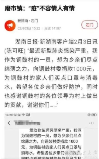 面对疫情,信息科学与工程学院的校友也在尽自己的一份力,他们积极主动加入到防疫工作中,用信院人的专业知识助力当地抗疫防疫工作。广西省选调生张咏校友,他亲自深入辖区群众挨家挨户的走访,开展疫情防控宣传工作,参与24小时值班制,督促群众严格遵守疫情防控工作措施要求,还利用各种信息平台为侦办涉疫情案件提供技术支撑。湖南省选调生陈可旺校友,自费购买了200个一次性医用口罩,义务捐赠给单位。值得一提的是,疫情防控期间,他撰写的新闻稿发表在湖南日报、常德日报、政协云等媒体客户端,共计21篇。虽然没能在第一时间奋战在抗击疫情最前线,但陈可旺同样通过自己的方式为疫情防控贡献着一份力量。