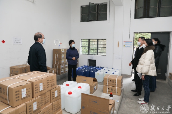 焦扬一行先后来到学校防疫物资储备仓库、危险化学品仓库和科教物资领用场所,实地调研检查防疫物资储备、危险化学品储存等情况,对资产处落实防疫物资分类台账、危化品双锁保管等规范的管理做法给予了充分肯定。