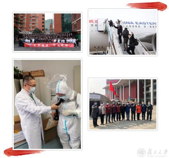 在特殊的地点开课,朱畴文还特意花了一点时间,在课程正式开讲前为同学们展示了几张珍贵的照片:一张出征时医疗队的合影,一张登上飞机时的合影,一张他在前线帮助队员穿上防护服的照片,以及一张上海9支医疗队领队集结的合影。“到武汉三个星期了,感触很多,这是最近工作的几张照片,希望今后有机会和同学进一步交流!”朱畴文说。