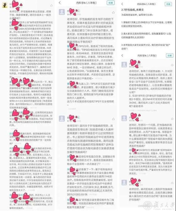 “前线工作真的很辛苦,希望朱老师注意休息,保重身体!”同学们也为前线开课的老师送上了关心与问候。面对这堂来自前线的特殊一课,同学们自然倍加珍惜。课程教学秘书、中山医院老年科医师刘楚表示,努力和感动不仅仅来自于授课老师。“即使课程内容在前一天才上传成功,同学们还是很认真地提前自学视频,提前完成作业,提前留言讨论,讨论版里的问题盖了一楼又一楼。”