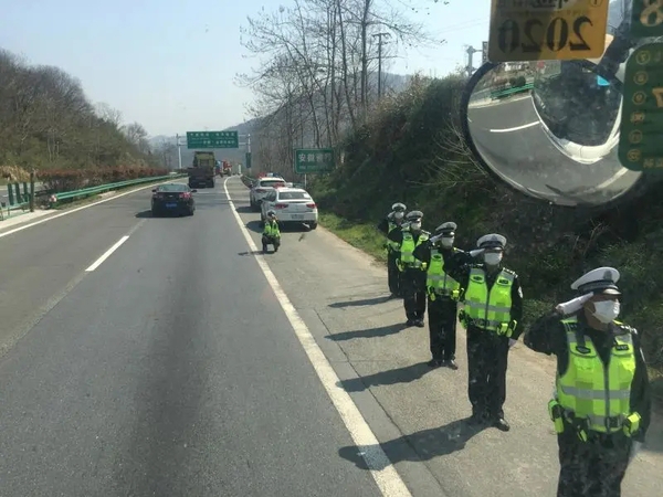 湖北交警沿高速口欢送队员