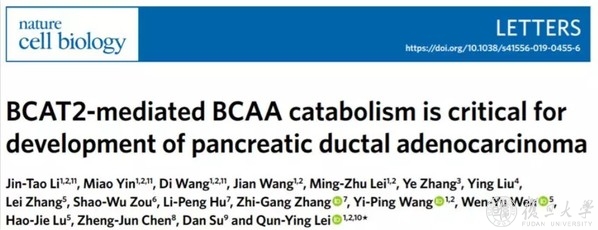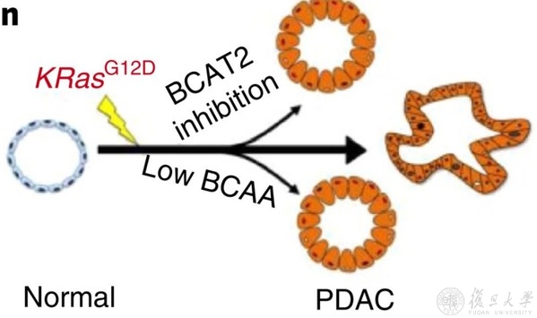 近日,复旦大学生物医学研究院/复旦大学附属肿瘤医院雷群英课题组在《自然》(Nature)子刊《自然·细胞生物学》(Nature Cell Biology)杂志上发表文章“BCAT2-mediated BCAA catabolism iscritical for development of pancreatic ductal adenocarcinoma”,首次揭示了癌基因Kras突变驱动的支链氨基酸-支链氨基酸转氨酶2(BCAA-BCAT2)代谢轴在PDAC早期发生中的重要作用和分子机制,以及靶向抑制BCAT2或饮食中BCAA限制如何减缓PDAC的进展。